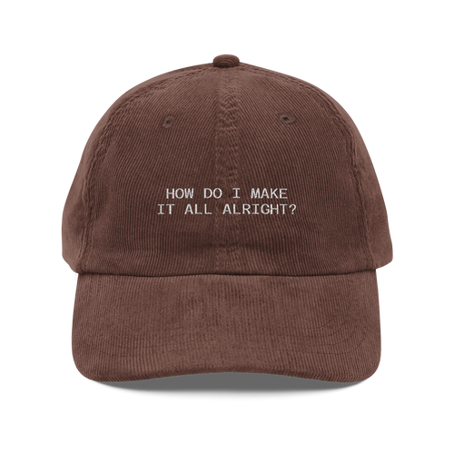 Embroidered lyrics from the debut GRESLEY single 'How?' on brown corduroy.